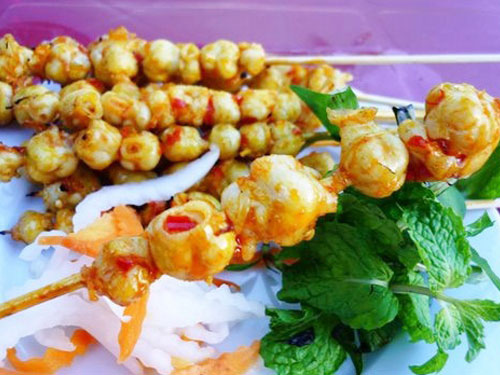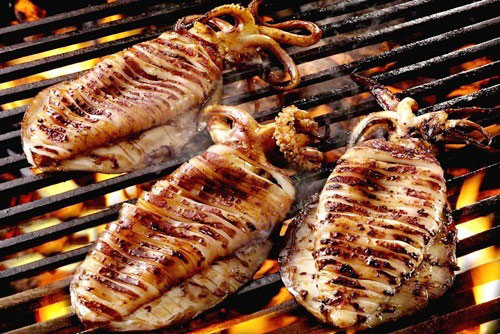 Từng xiên răng mực đều tăm tắp vàng vàng dậy mùi thơm cuốn hút